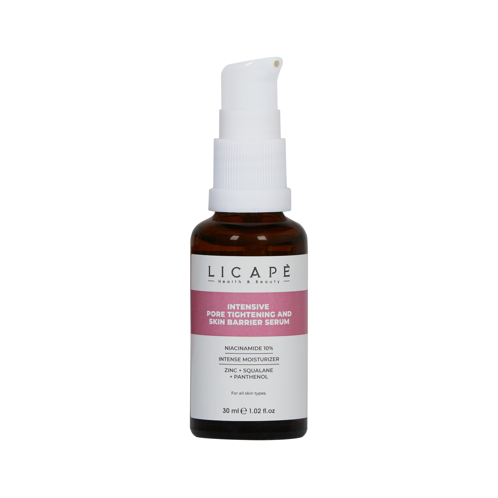 Licape Niacinamide %10 Serum, cilt yüzeyinden epidermal su kaybını engelleyerek cilt bariyerini onarır ve güçlendirir.